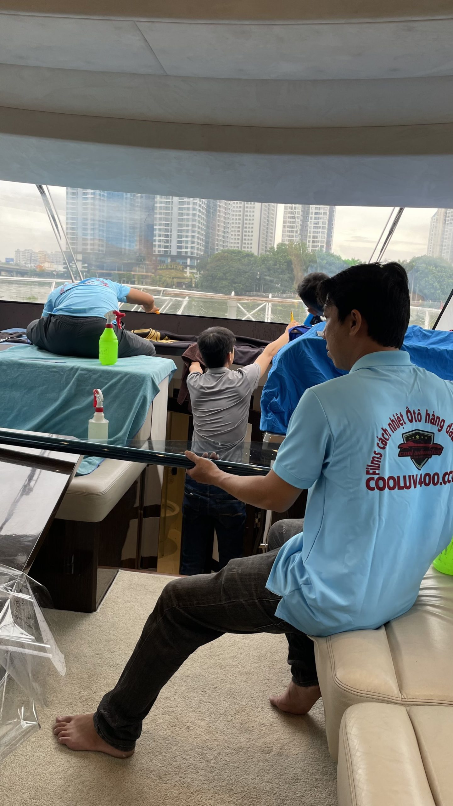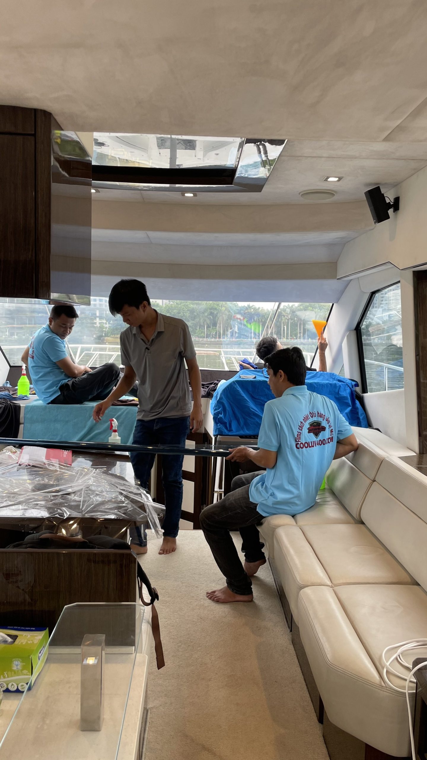Được ông chú tin tưởng nên đợt này Cooluv400 tiếp tục chinh phục du thuyền . Nay du thuyền được chống nắng, chống nóng bằng dòng film mới, màu xanh biển , VLP 12%, IRR 99%, VLT 97%